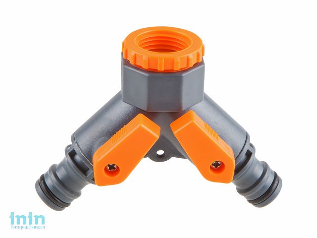 Тройник-распределитель применяется при подключении шлангов к водопроводной трубе или крану с внешней резьбой  1/2" или 3/4". Разделяет входящий поток воды на 2 выхода с возможностью перекрытия каждого потока.