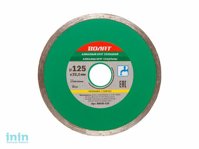 Алмазный круг 125х22 мм по керамике сплошн. ВОЛАТ (мокрая резка)