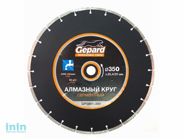 Алмазный круг 350х20/25.4 мм по бетону сегмент. GEPARD (сухая резка)