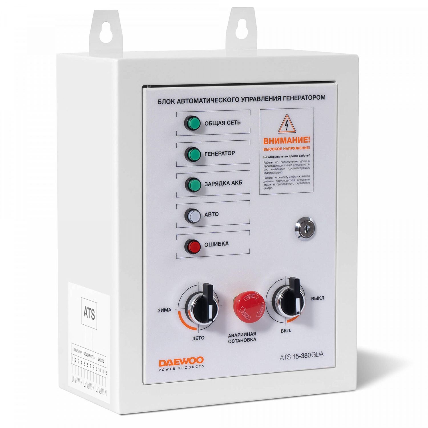 DAEWOO ATS 15-380 GDA имеет удобное крепление для монтажа на стену. Все электронные и электромонтажные компоненты находятся внутри прочного металлического корпуса, доступ к которому осуществляется с помощью ключа.