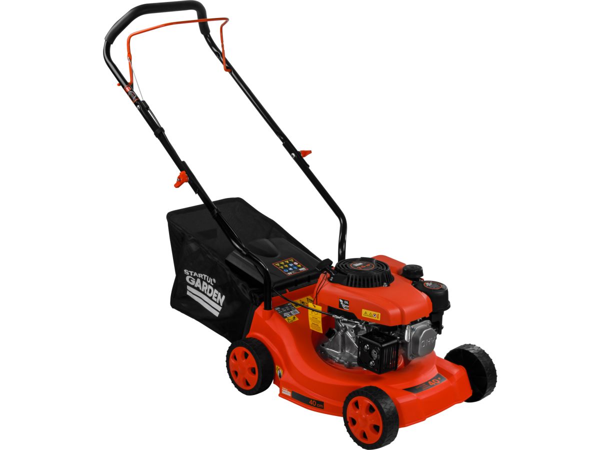 Газонокосилка бензиновая STARTUL GARDEN 40 (3.5 л.с., шир. 40 см, ручной привод, пластик. корпус, травосборник 40 л)