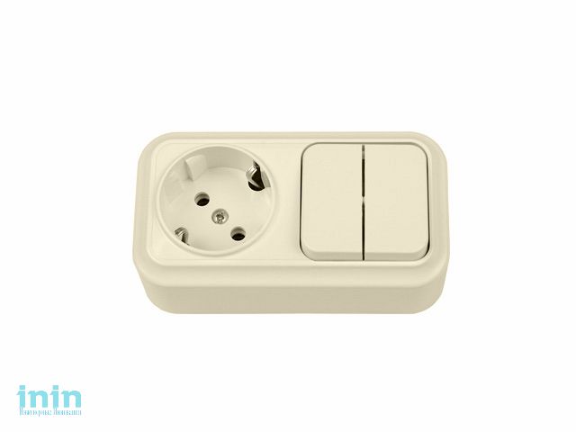 Блок выкл. 2 клав. + розетка (открытая, с/з) бежевая, Вариант, BYLECTRICA (Выключатель двухклавишный + розетка с заземляющим контактом открытой устано