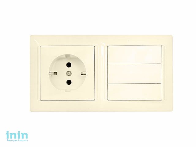 Блок выкл. 3 клав. + розетка (скрытая, с/з) бежевый, Стиль, BYLECTRICA (Блок Выключатель трехклавишный + розетка с заземляющим контактом скрытой устан