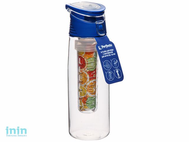 Бутылка для воды с контейнером д/фруктов, 750 мл, синяя, PERFECTO LINEA (спорт, развлечение, ЗОЖ)