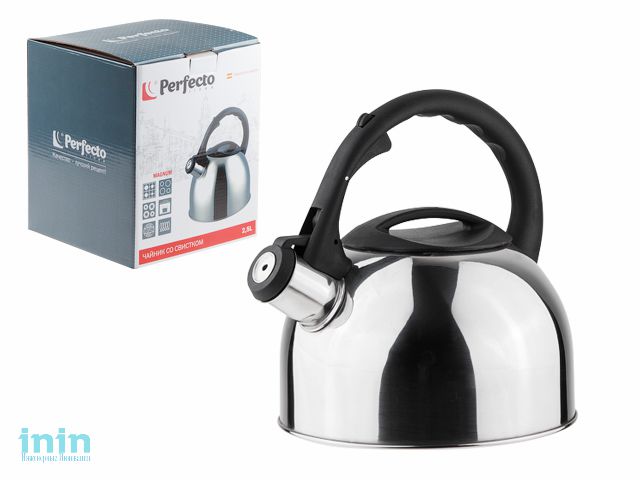 Чайник со свистком, нержавеющая сталь, 2.5 л, серия Magnum, серебристый металлик, PERFECTO LINEA