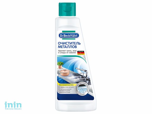 Dr. Beckmann Очиститель металлов предназначен для эффективной чистки и защиты поверхностей из нержавеющей стали, например: раковин, кастрюль, чайников, столовых приборов и т.д от грязи и отпечаток пальцев. Предназначен также для изделий из хрома, меди, олова или серебра.