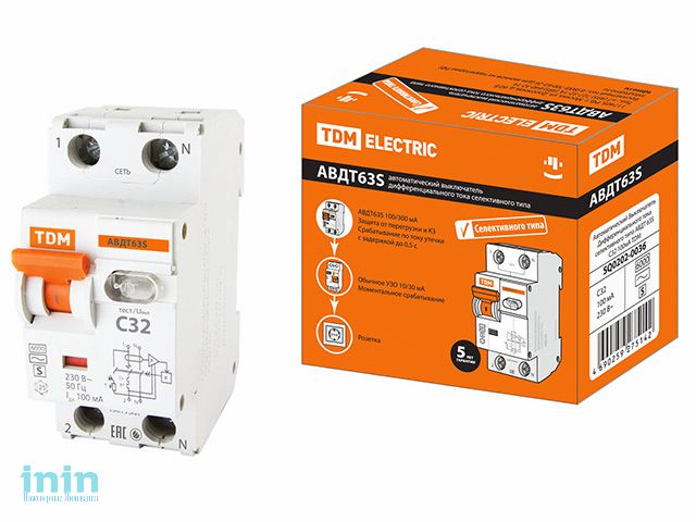 Дифф. авт. выкл. селективного типа 63S C32 100мА TDM