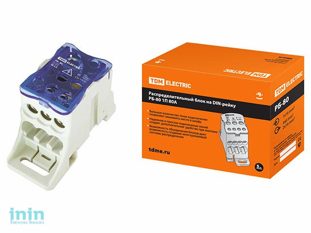 Распределительный блок на DIN-рейку РБ-80 1П 80А (1х16/4х6+2x16) TDM