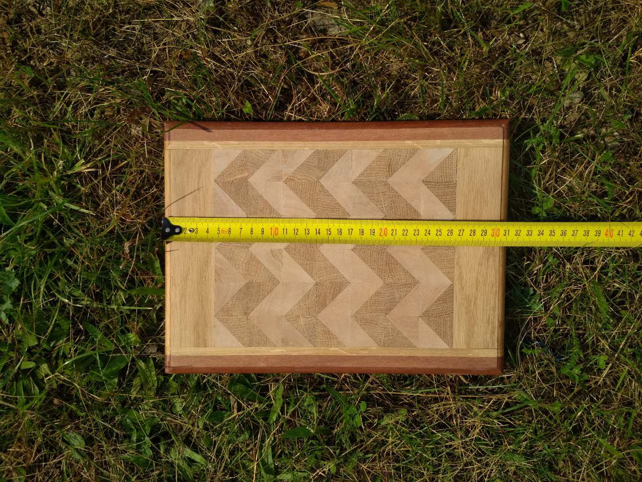 Разделочная доска выполнена из дуба, красного дерева и клена