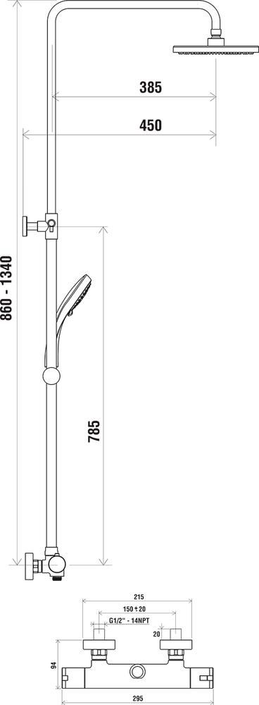 Душевая стойка с термостатом Ravak 091,00, верхний и ручной душ