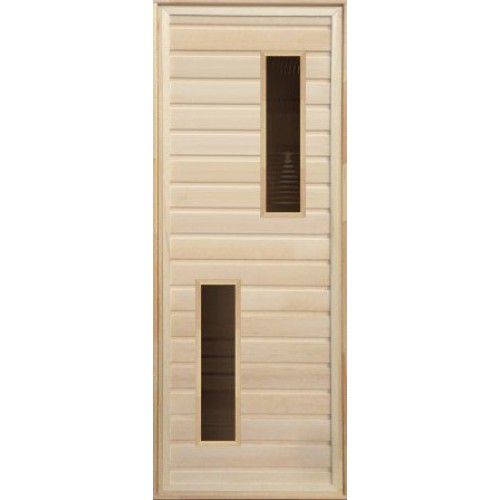 Дверь для бани деревянная с 2-мя стеклами 1900х700мм