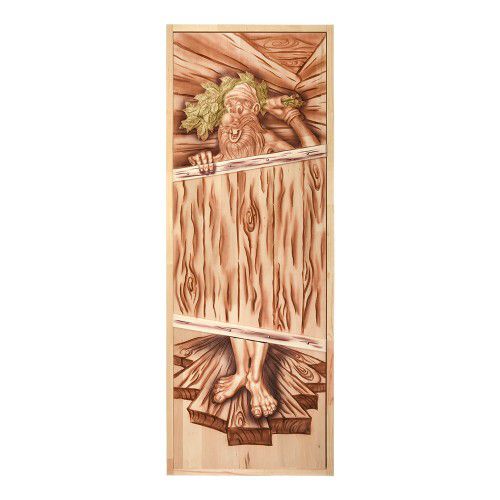Дверь для бани деревянная устанавливается как входная дверь в парное помещение. Дверь выполнена из массива. Оригинальный резной рисунок украсит помещение бани.