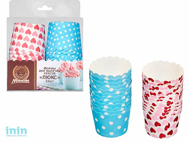 Формы для выпечки кексов, бумажные, "Люкс", 24 шт., 5х4,5 см, MARMITON (дизайн в ассортименте)