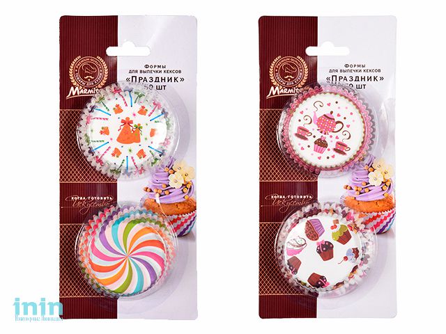 Формы для выпечки кексов, бумажные, "Праздник", 50 шт., 5х3 см, MARMITON (дизайн в ассортименте)