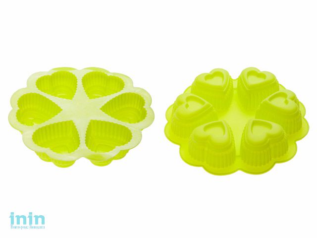 Форма для выпечки, силиконовая, круглая на 6 сердец, 25 х 4.5 см, зеленая, PERFECTO LINEA