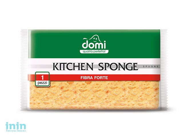 Губка кухонная 1 шт DOMI (Состав: поролон-бежевый, фибра- черная. Размер губки: 96х67х39мм)