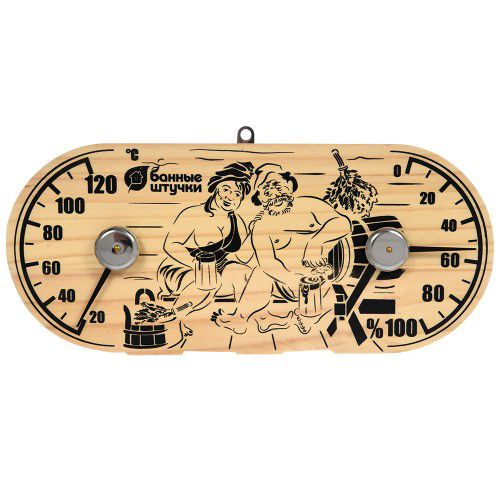 Термометр с гигрометром Банная станция "В парной" для бани и сауны арт.18048 - стрелочный прибор для измерения температуры и влажности в парном помещении. Интересный дизайн дополнит интерьер вашего парного помещения.