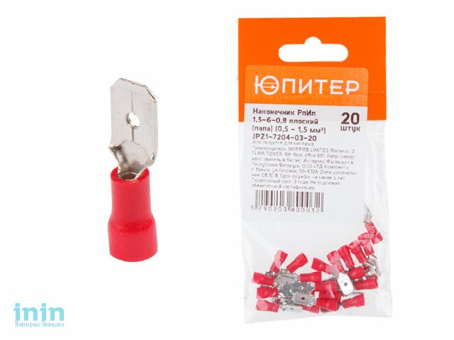 Совместимые товары: JPZ1-7204-01-20 Наконечник РпИм 1,5-7-0,8 плоский (мама) (0,5 - 1,5 мм2) (20 шт) Юпитер;