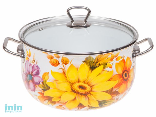 Кастрюля стальная эмалированная, 6.2 л, серия Цветочный хоровод, PERFECTO LINEA (Супер цена! диаметр 24 см, высота 15 см)