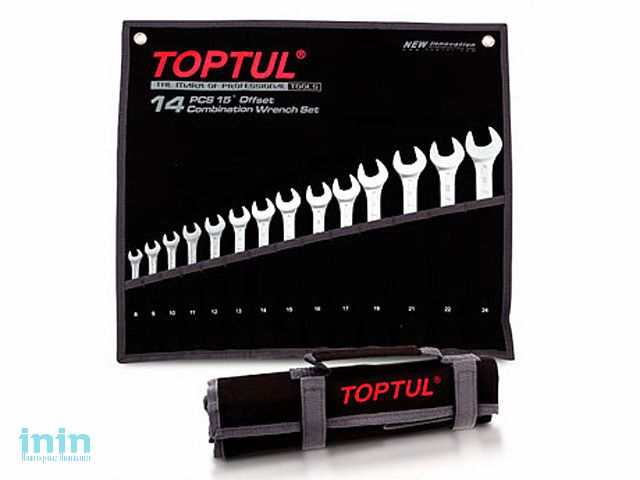 Набор ключей комбинированных TOPTUL состоит из 8 предметов размером 10, 11, 12, 13, 14, 15, 17 и 19 мм серии AAEB1010-1919, имеющих окончание в виде рожкового ключа с одной стороны и окончание в виде накидного ключа с другой стороны. Инструмент упакован в удобный чехол черного цвета с отдельным карманом для каждого ключа. Чехол можно повесить на стену, а можно использовать в качестве переносной сумки. Рекомендуется для профессионального использования.
