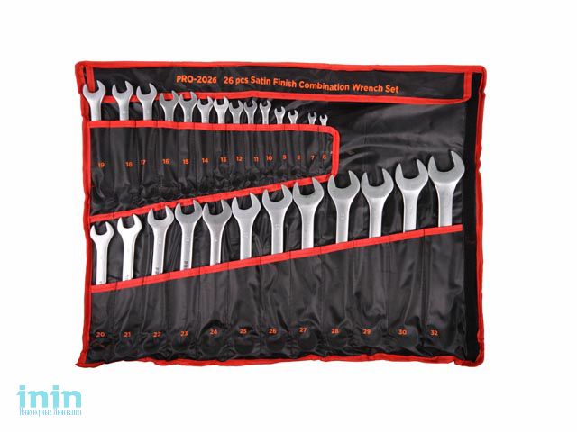 Набор ключей комбинированных 26 предметов, Cr-V. В набор входят ключи следующих размеров: 6, 7, 8, 9, 10, 11, 12, 13, 14, 15, 16, 17, 18, 19, 20, 21, 22, 23, 24, 25, 26, 27, 28, 29, 30, 32 мм.