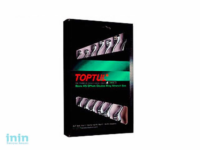 Набор ключей накидных TOPTUL состоит из 8 инструментов размером 6х7, 8х9, 10х11, 12х13, 14х15, 16х17, 18х19 и 20х22 мм. Все ключи изогнуты на 45° для работы в труднодоступных местах.