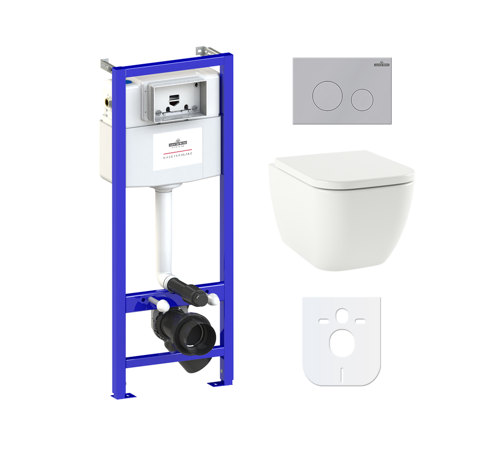 Комплект инсталляции и унитаза 6 в 1 Lavinia Boho Relfix One Compacto (система инсталляции Relfix 38010010; универсальный комплект креплений к стене (включено в артикул 38010010); звукоизолирующая пластина для унитаза (включена в артикул 38010010); клавиша смыва Relfix 380502MC; подвесной унитаз One Compacto 3302003C; быстросъемное дюропластовое сиденье с медленно опускающейся крышкой и хромированными металлическими петлями (включено в артикул 3302003C)