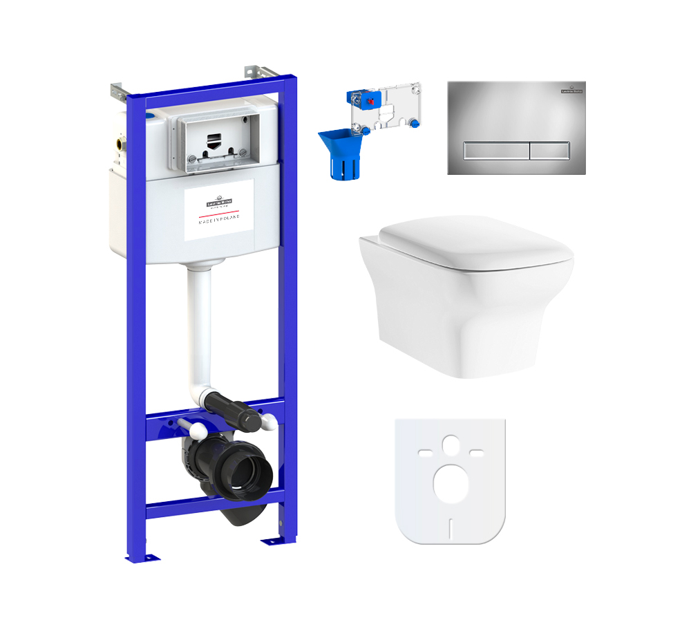 Комплект инсталляции и унитаза 7 в 1 Lavinia Boho Relfix Bristol Rimless (система инсталляции Relfix 38010010; универсальный комплект креплений к стене (включено в артикул 38010010); звукоизолирующая пластина для унитаза (включена в артикул 38010010); клавиша смыва Relfix 3805001C; подвесной унитаз Bristol Rimless 3305002R; быстросъемное дюропластовое сиденье с медленно опускающейся крышкой и хромированными металлическими петлями (включено в артикул 3305002R); дозатор для дезинфицирующих средств 38040010)