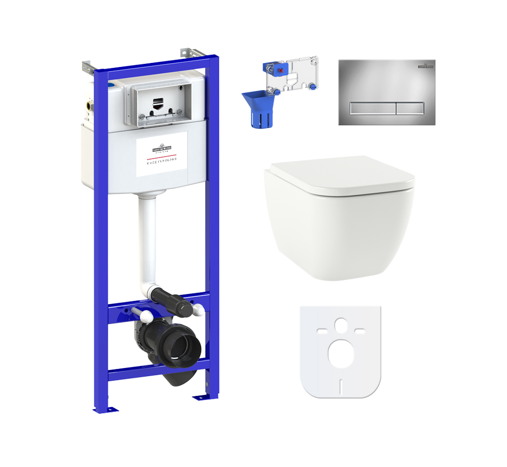 Комплект инсталляции и унитаза 7 в 1 Lavinia Boho Relfix One (система инсталляции Relfix 38010010; универсальный комплект креплений к стене (включено в артикул 38010010); звукоизолирующая пластина для унитаза (включена в артикул 38010010); клавиша смыва Relfix 3805001C; подвесной унитаз One 33020020; быстросъемное дюропластовое сиденье с медленно опускающейся крышкой и хромированными металлическими петлями (включено в артикул 33020020); дозатор для дезинфицирующих средств 38040010)