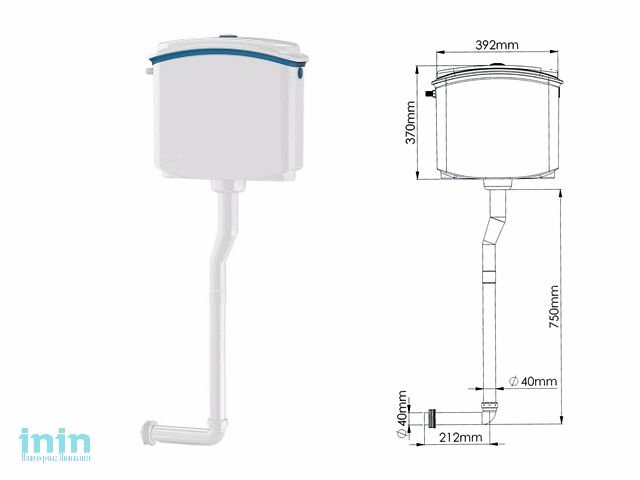 Сливной бачок пластиковый, кнопочный, с комплектом труб подключения