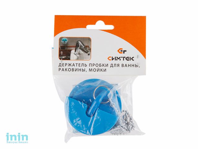 Пробка для ванны (набор), голубой (держатель для пробки - 1шт.,+ пробка с метал. цепочкой - 1шт.) (Симтек)