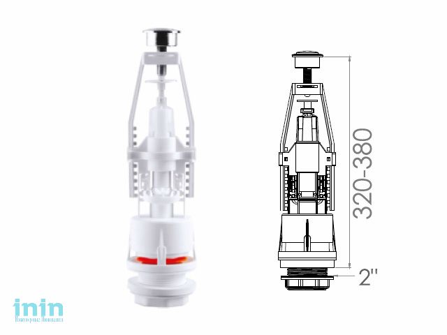 Одинарный слив. Кнопка пластиковая, хромированная, кнопка фиксирует крышку бачка.
