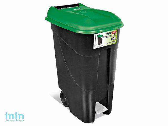 Контейнер для мусора пластик. 80л с педалью (зел. крышка) (TAYG)