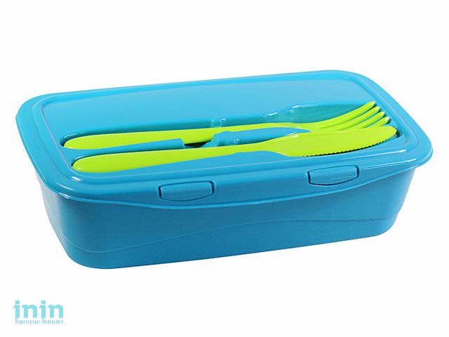 Контейнер для обеда со столовыми приборами (бирюзовый) (IDEA)