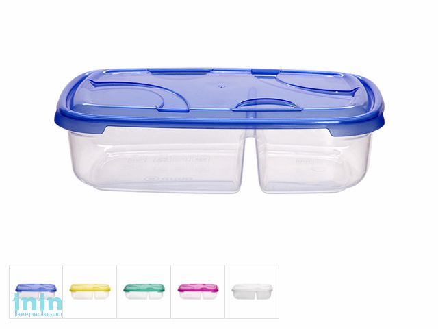 Контейнер пласт. прямоуг. 0.9 + 0.5 л, с крышкой, Frigo Plus, DRINA (265x170x65, цвета в ассортименте, подходит для хранения пищ.пр-тов)