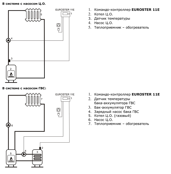 Euroster 11E это электронный, программируемый контроллер, предназначенный для взаимодействия с контурным насосом Ц.О. или ГВС.