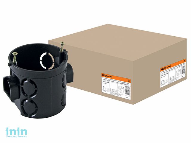 Установочная коробка СП D68х62мм, углубленная, саморезы, стыковочные узлы, черная, IP20, TDM