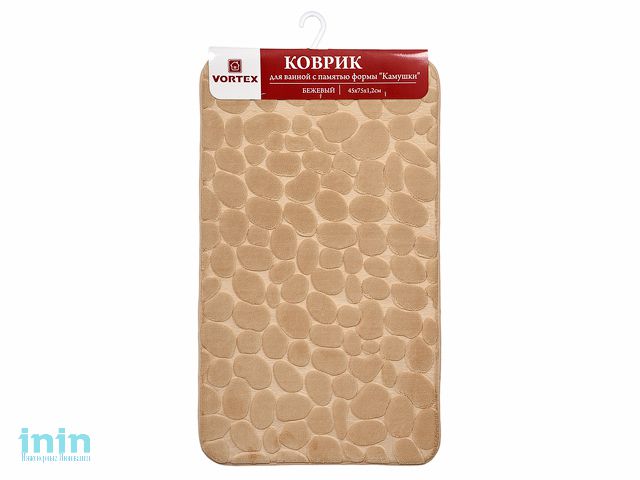 Коврик для ванной c памятью формы "Камушки" 45х75х1,2 см, бежевый, VORTEX (ВОРТЕКС)