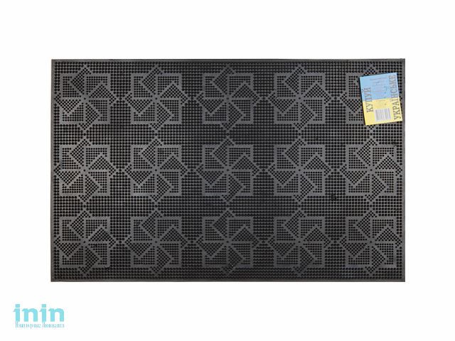 Коврик придверный 58х36,5 см, черный, с геометрическим узором, TM YPgroup (Размер 58х36,5 см. Материал: вулканизированная непористая резина.)
