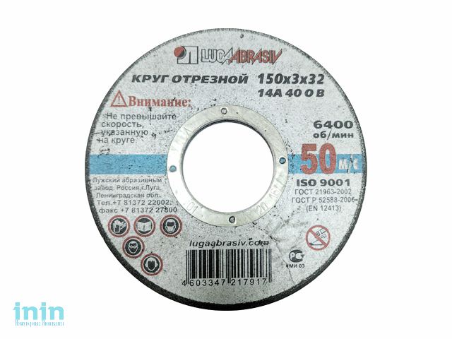 Круг отрезной 150х3.0x32.0 мм для металла (не армированный) LUGAABRASIV (не армированный, для отрезных машин, подходит для заточки.)