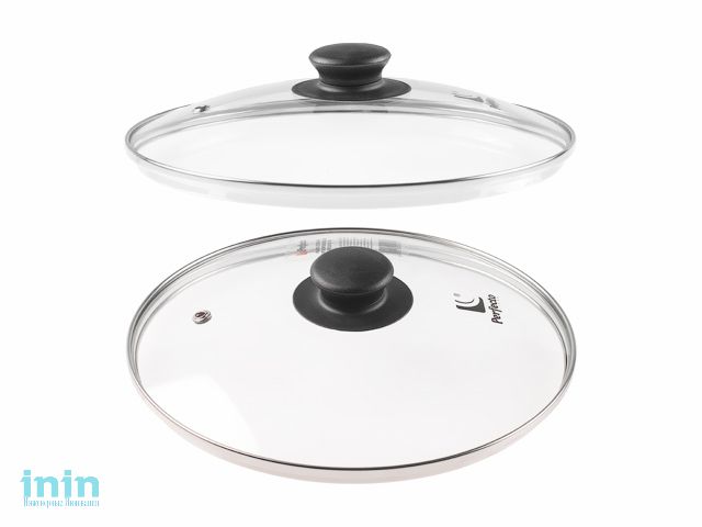 Крышка стеклянная, 240 мм, с металлическим ободом, круглая, PERFECTO LINEA (Стеклянная крышка на сковороду диаметром 24 см с паровыпуском изготовлена