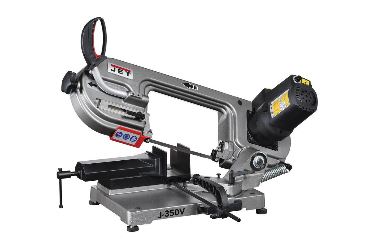 JET 350V представляет собой модель ленточнопильного станка, разработанного для использования в домашних условиях, для мелкосерийного производства на предприятиях. Тяжелая литая пильная рама обеспечивает необходимое прижимное усилие в момент пиления. Наличие пружины позволяет компенсировать усилие оператора при подъеме и опускании пильной рамы. Станок рассчитан на обработку круглых заготовок диаметром до 150 мм. Модель имеет поворотную раму, соответствуя европейскому типу. Шкала позволяет осуществить точную установку рамы в диапазоне 0-60 0. Опускание рамы осуществляется непосредственно оператором.
