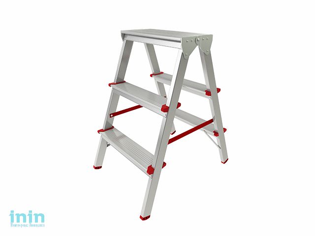 - ступени с двух сторон позволяют работать не переставляя стремянку тем самым экономя время;