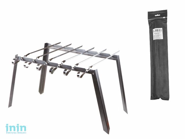 Подставка под шампуры предназначена для приготовления шашлыка на открытом воздухе. Малые размеры и вес подставки. Шампуры изготовлены из нержавеющей стали и имеют длину 45 см.