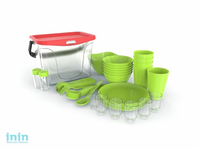 Также его удобно перевозить в автомобиле или в рюкзаке, поскольку он достаточно компактный и легкий. Отличный способ устроить спонтанный пикник где угодно! Набор для пикника на 6 персон спокойно вмещается в емкости 6 л и включает в себя стаканы тарелки, приборы и салатники из пищевого многоразового пластика, которые после мероприятия можно мыть в посудомоечной машине. Для особого случая предусмотрены рюмки по 50 г