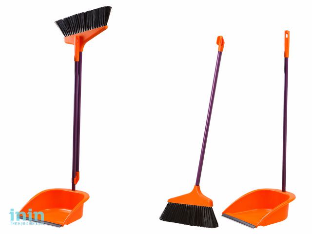 Набор состоит из метлы и совка с удлиненными ручками, что позволяет производить уборку не наклоняясь. Совок открытого типа имеет обрезиненную кромку, благодаря чему облегчает процесс подметания и не царапает напольное покрытие. Набор компактно складывается, не занимая много места, и легко разбирается благодаря резьбе на ручках.