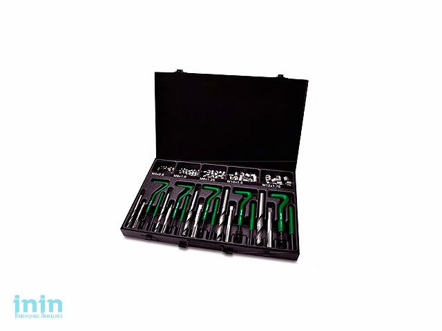 Набор для каждого размера включает в себя винтовые катушки из нержавеющей стали, стальной резьбовой метчик и сверло, инструменты для установки и инструменты для разрыва штифта.