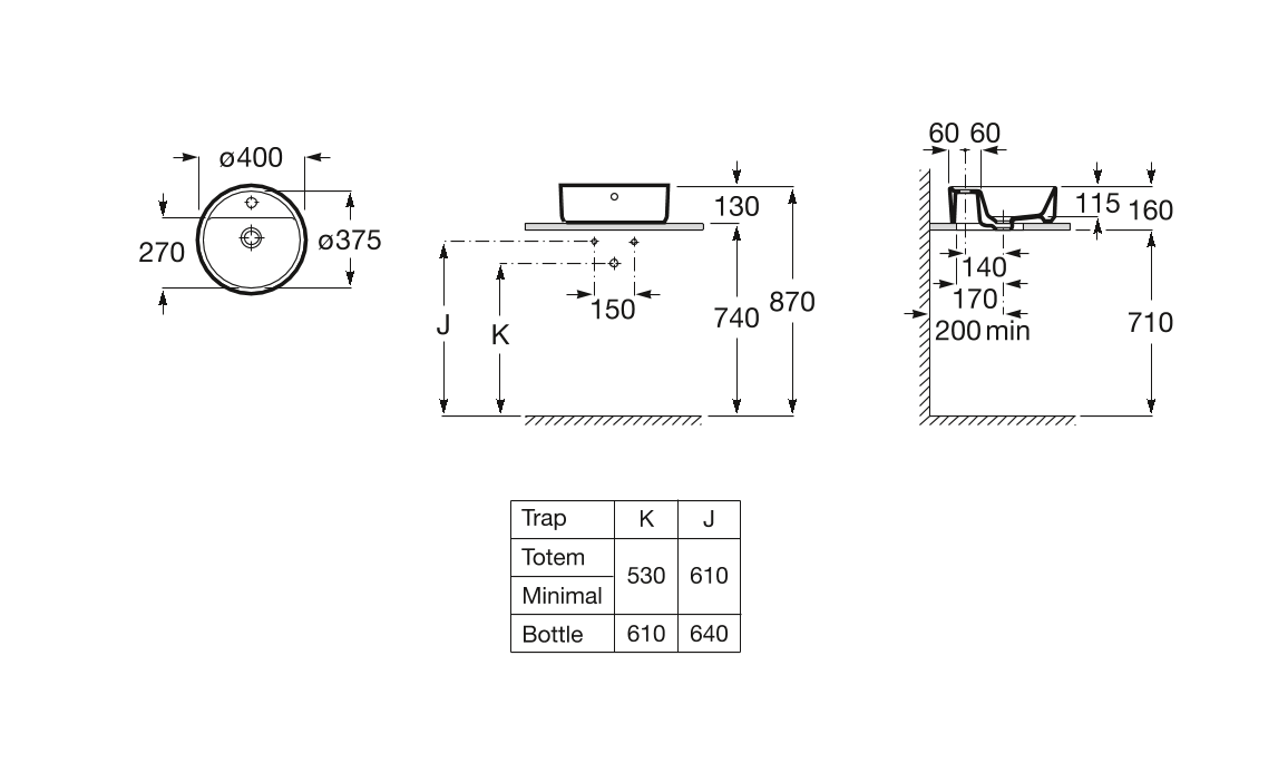 Круглый встраиваемый умывальник Roca The Gap A3270MK000 нижняя сторона умывальника застеклена, имеется небольшая рабочая поверхность.