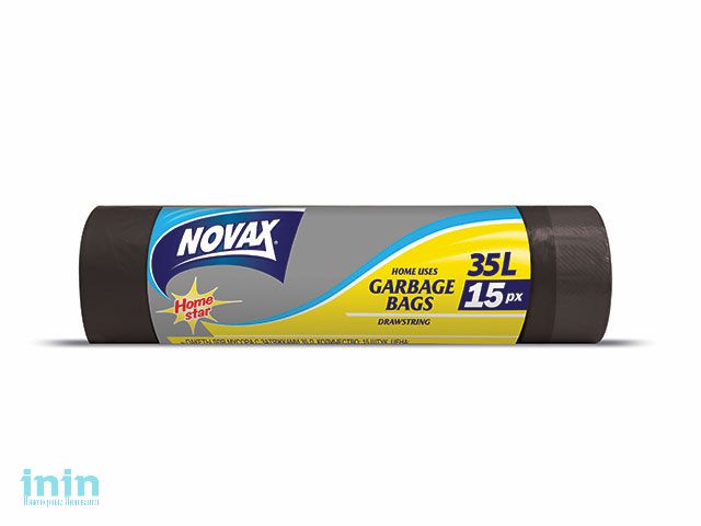 Пакеты для мусора 35л/15шт c затяжкой NV (Материал / Цвет: LDPE / Чёрный . Размер единицы: 50 x 55 см.Толщина: 14 мкм) (NOVAX)