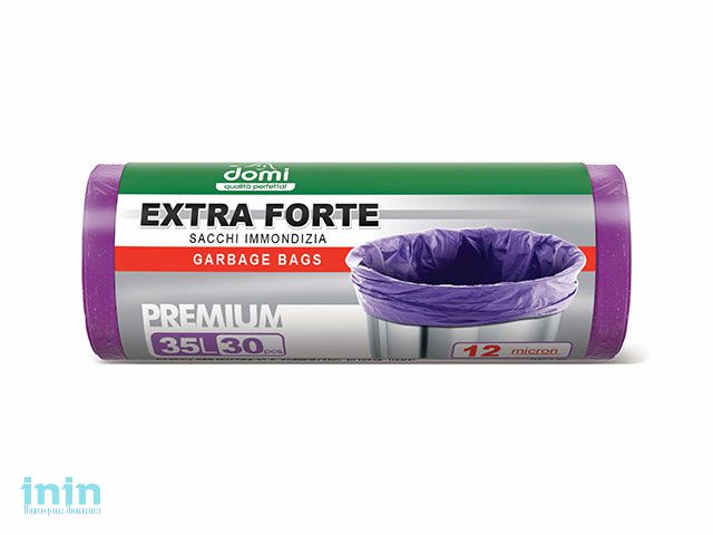 Пакеты для мусора 35л/30шт DOMI (Материал: LDPE (ПЭВД). Размер: 49х57см. Толщина: 12мкм. Цвет: фиолетовый.Тип дна: звезда)